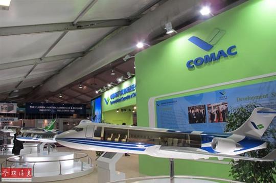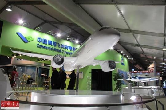 中國商用飛機有限責任公司攜C919大型客機模型、ARJ21-700新支線(xiàn)飛機模型參加范堡羅國際航空展。來(lái)源:參考消息