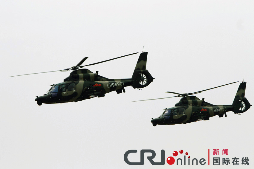 解放軍直-9WZ武裝直升機進(jìn)行飛行表演。戴爽 攝