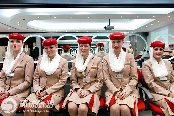 在迪拜的阿聯(lián)酋航空學(xué)院的教室里,空姐們身著(zhù)制服,姿勢統一,形象俏麗宜人!