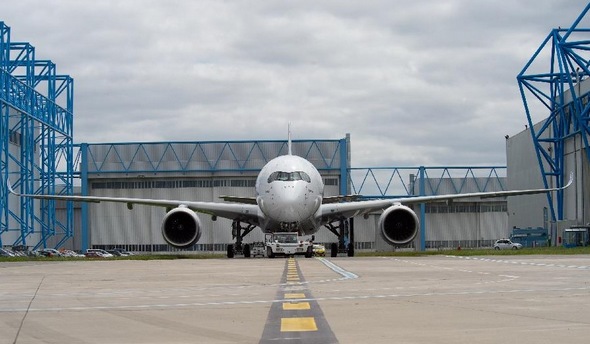 首架用于飛行測試的空客A350XWB寬體飛機日前在法國圖盧茲完成整體噴漆,這標志著(zhù)空客這一新型飛機又向預定今年夏季的首次飛行邁進(jìn)一步。