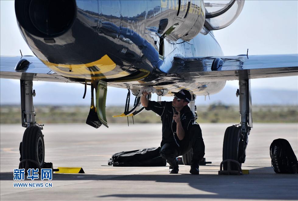 當日下午,國際著(zhù)名的民用專(zhuān)業(yè)噴氣機特技飛行表演隊——歐洲百年靈飛行表演隊抵達嘉峪關(guān)國際機場(chǎng)。據了解,百年靈飛行表演隊將在8月13日上午在嘉峪關(guān)關(guān)城上空進(jìn)行特技表演,之后機隊將飛往克拉瑪依進(jìn)行表演。新華社記者 陳斌 攝