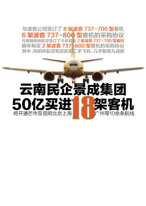上周末,景成集團正在籌建的全資子公司——云南瑞麗航空公司與美國波音公司、德國柏林航空公司簽訂總計18架客機的采購協(xié)議。在大手筆購進(jìn)飛機的背后,一個(gè)由30多人組成的籌備團隊在一月前悄然入駐昆明,并緊鑼密鼓地開(kāi)展籌建工作。