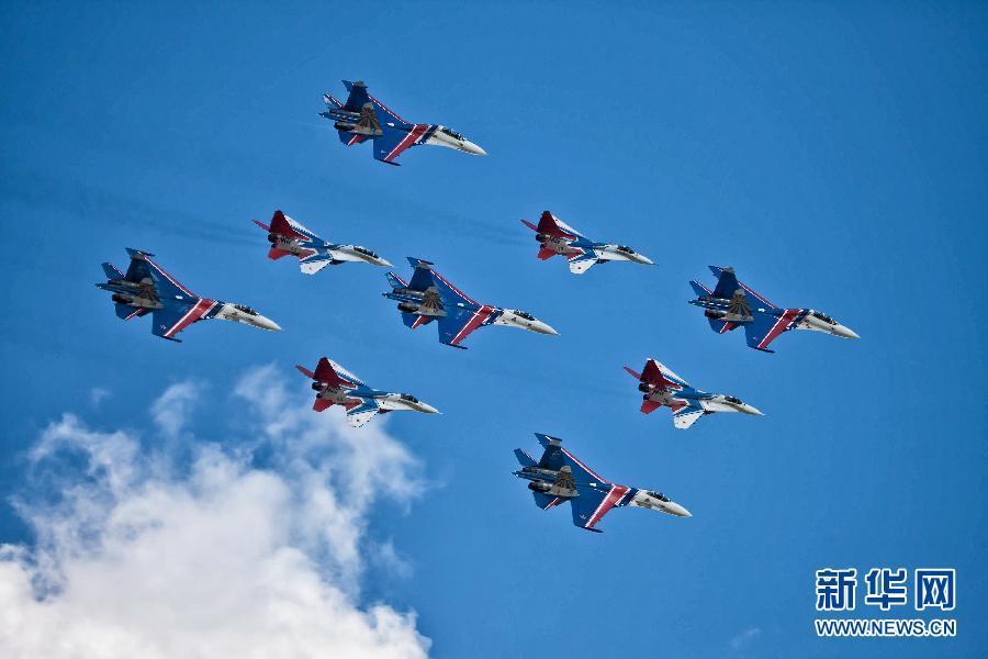 8月27日至9月1日,第11屆莫斯科航展在莫斯科郊外的茹科夫斯基市舉行,來(lái)自43個(gè)國家的277家航空航天企業(yè)參展。俄羅斯“雨燕”、“俄羅斯勇士”飛行表演隊、解放軍“八一”飛行表演隊以及眾多新式飛機獻技表演。本屆航展也吸引了許多中國航空愛(ài)好者前往觀(guān)看、拍攝,用鏡頭留下精彩瞬間。新華社發(fā)(史小剛攝)