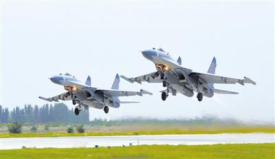 8月17日,西北某機場(chǎng)。蘭空航空兵某團一架架戰機編隊起飛,直刺蒼穹,演練遠程奔襲課目! £悜c順攝