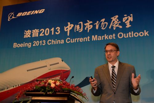 波音民用飛機集團市場(chǎng)營(yíng)銷(xiāo)副總裁蘭迪?廷塞斯波發(fā)布2013年中國市場(chǎng)展望。波音供圖