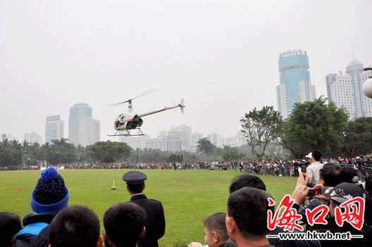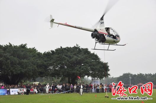 12月17日,2011中國首屆環(huán)海南島飛行拉力賽在?谂e行;顒(dòng)現場(chǎng)規?涨,扣人心弦,精彩紛呈。據悉,本次飛行拉力賽至本月30日止。圖為直升機定位“投籃”賽現場(chǎng)。