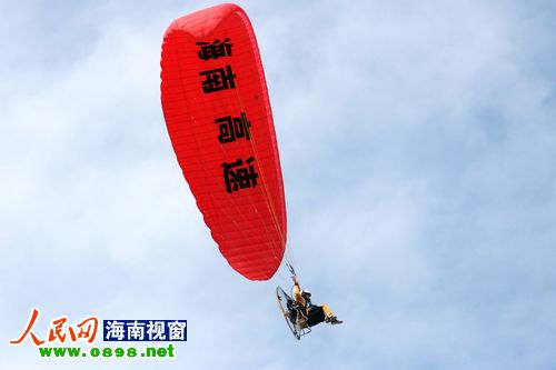 21日上午8點(diǎn)左右,經(jīng)過(guò)一天的休整,2011環(huán)海南島飛行拉力賽東方段在東方市邊貿城正式開(kāi)幕。比起前幾日的大風(fēng)天氣,今天的風(fēng)速明顯減弱,在?谖茨芘c廣大市民和游客見(jiàn)面的熱氣球、動(dòng)力傘、動(dòng)力三角翼今天也終于如愿升空,在東方的碧海藍天間盡情的翱翔。大批東方市民趕到現場(chǎng),一幕幕精彩的飛行表演引得現場(chǎng)尖叫連連、掌聲不斷。