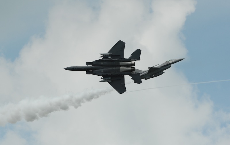 2012年1月27日上午,新加坡空軍F-15SG戰機與F-16C戰機演練“迎頭對飛”。
