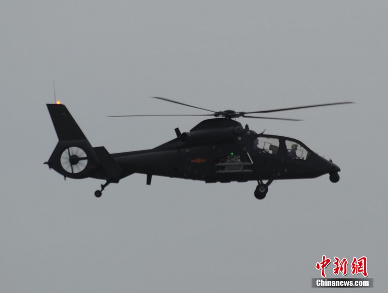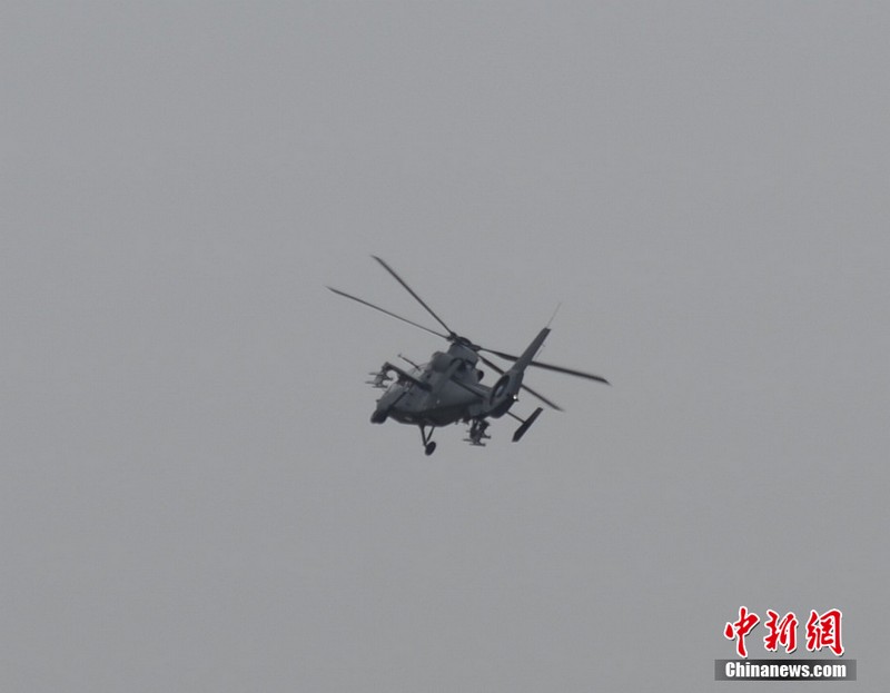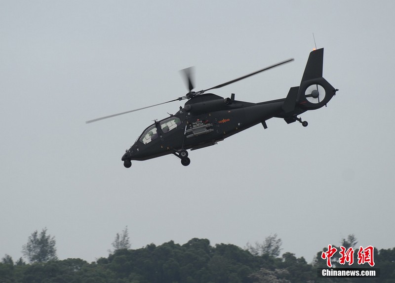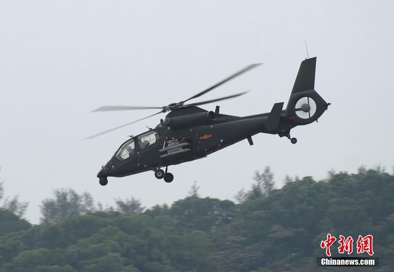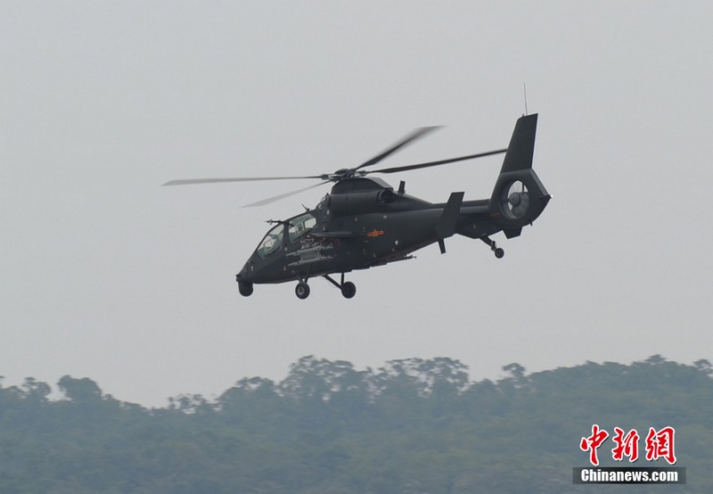 中新網(wǎng)珠海11月11日電(陳海峰) 中國陸航直19武裝直升機11日在珠海航展上空進(jìn)行了精彩的飛行表演。