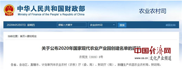 經(jīng)濟日報-中國經(jīng)濟網(wǎng)北京5月7日訊  5月6日,農業(yè)農村部、財政部公布2020年國家現代農業(yè)產(chǎn)業(yè)園創(chuàng )建名單。經(jīng)遴選,批準北京市平谷區等31個(gè)現代農業(yè)產(chǎn)業(yè)園創(chuàng )建國家現代農業(yè)產(chǎn)業(yè)園;江蘇省蘇州市吳江區等8個(gè)省級現代農業(yè)產(chǎn)業(yè)園納入國家現代農業(yè)產(chǎn)業(yè)園創(chuàng )建管理體系。