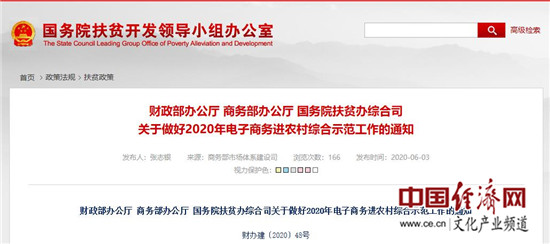 為貫徹落實(shí)中央一號文件部署,推動(dòng)提升電子商務(wù)進(jìn)農村,建立農村現代市場(chǎng)體系,助力脫貧攻堅和鄉村振興,財政部、商務(wù)部、國務(wù)院扶貧辦決定2020年繼續開(kāi)展電子商務(wù)進(jìn)農村綜合示范?,F就有關(guān)事項通知如下: