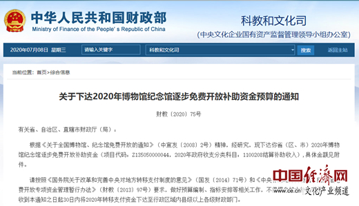 財政部:2020年博物館紀念館逐步免費開(kāi)放補助資金預算超30億