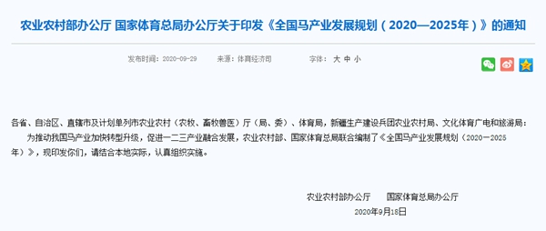 《全國馬產(chǎn)業(yè)發(fā)展規劃(2020—2025年)》