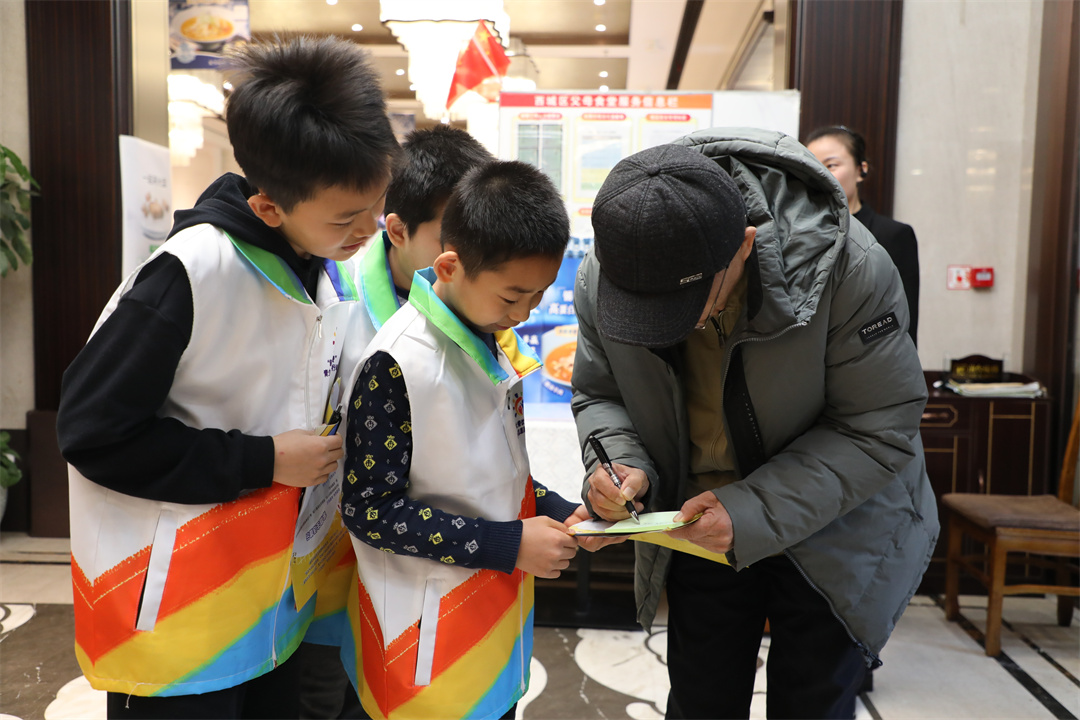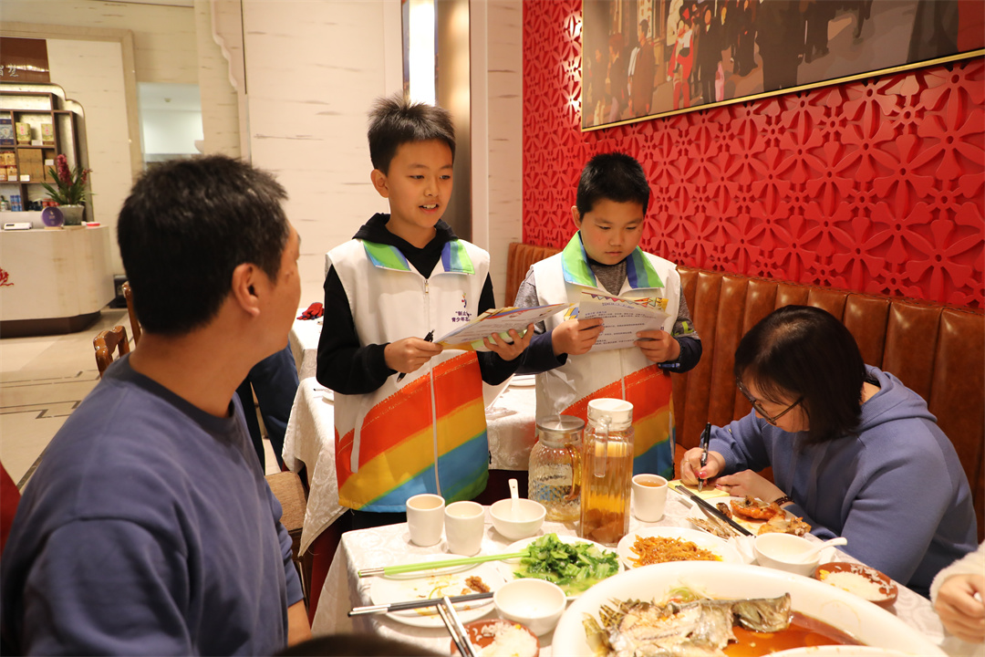 志愿者們還學(xué)以致用,化身“制止餐飲浪費宣傳員”,向餐廳中的食客宣傳節糧反浪費知識,發(fā)放節糧知識宣傳單,并邀請食客寫(xiě)下自己節約糧食和避免浪費的心得。在店食客積極參與留言并對小志愿者的宣講表示認同。