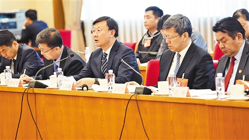 上圖 3月12日,人大內蒙古代表團舉行全體會(huì )議。全國人大代表、內蒙古自治區包頭市市長(cháng)趙江濤(中)表示,生態(tài)文明建設利國利民。 本報記者 李景錄攝
