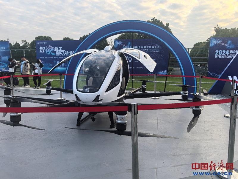 億航-216載人飛行器為提供低空中短途交通運輸解決方案。中國經(jīng)濟網(wǎng)記者郭文培攝