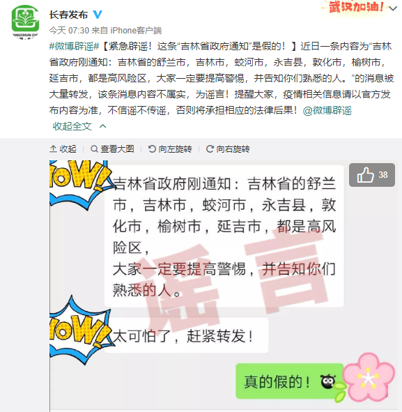 謠言粉碎機三:“吉林省政府通知”:吉林多市屬高風(fēng)險區?假的!