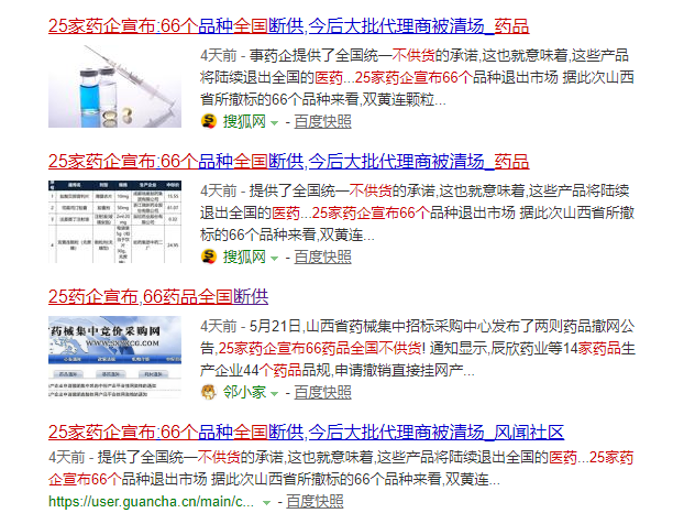 因此,日前有個(gè)別媒體報道稱(chēng)“25家藥企宣布66個(gè)藥品全國斷供”。經(jīng)濟日報-中國經(jīng)濟網(wǎng)記者梳理發(fā)現,“66個(gè)藥品品規全國斷供”這種說(shuō)法并不成立,目前藥品仍在全國供應。