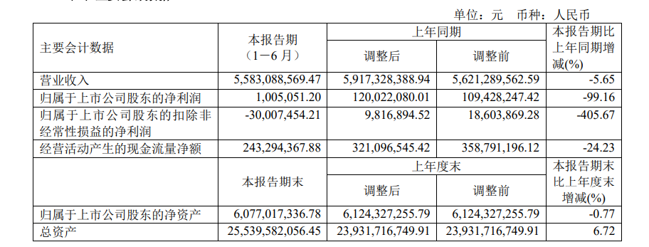 8月25日,華北制藥披露《2021年半年報》,公司營(yíng)收凈利雙雙下降。其中,實(shí)現營(yíng)收558308.86萬(wàn)元,同比降低5.65%;歸屬于上市公司股東的凈利潤為100.51萬(wàn)元,同比降低99.16%;歸屬于上市公司股東的扣除非經(jīng)常性損益的凈利潤為-3000.75萬(wàn)元,虧損同比擴大405.67%;經(jīng)營(yíng)活動(dòng)產(chǎn)生的現金流量?jì)纛~為24329.44萬(wàn)元,同比下降24.23%。