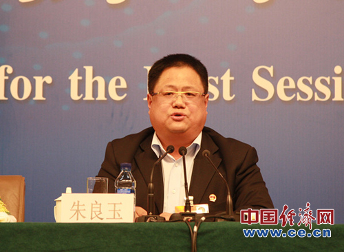 3月10日(星期日)15:00,在梅地亞中心多功能廳舉行“一線(xiàn)工人農民代表談履職”為主題的記者會(huì ),邀請六位代表就相關(guān)問(wèn)題回答中外記者提問(wèn)。圖為北京市保安服務(wù)總公司海淀分公司經(jīng)理助理、第一項目部經(jīng)理朱良玉。中國經(jīng)濟網(wǎng)記者劉瀟瀟/攝