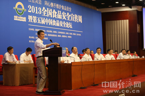 2013年全國食品安全宣傳周啟動(dòng)儀式暨第五屆中國食品安全論壇6月17日在北京舉辦,今年主題為“社會(huì )共治 同心攜手維護食品安全”。圖為啟動(dòng)儀式主席臺。中國經(jīng)濟網(wǎng) 王耀峰/攝